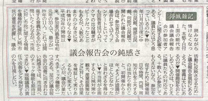 「議会報告会の鈍感さ」